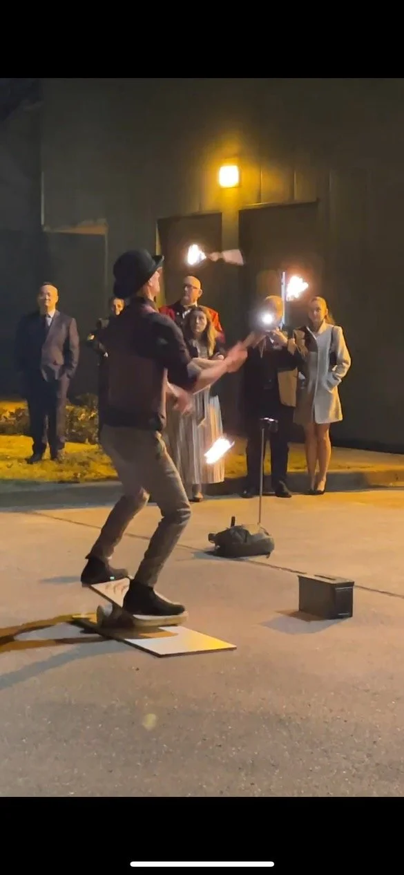 High energy, visually striking fire performance. A breath of fresh flair! Stand back and Watch as Curtis The Combustor puts together a custom fire show tailored to your event using a variety of mesmerizing patterns and props.